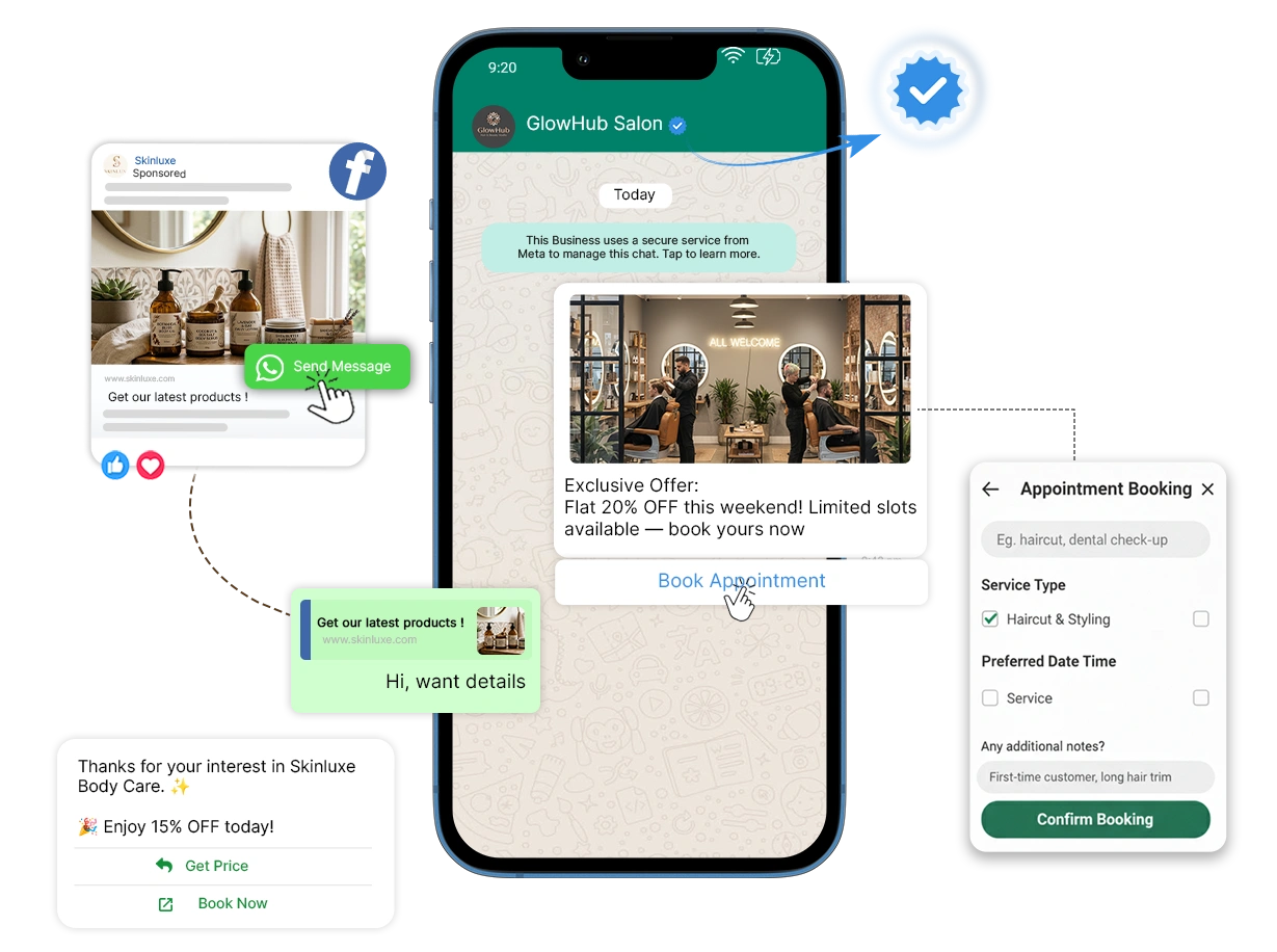 Turn every Facebook and Instagram ad click into a live chat by deploying Click-to-WhatsApp ads to capture high-quality leads.